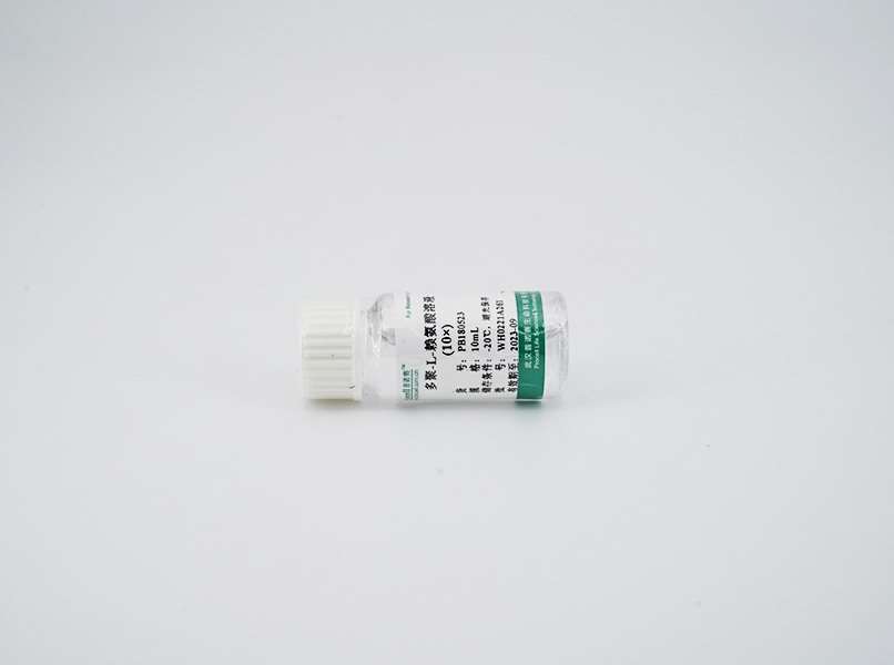 多聚-L-赖氨酸 (Poly-L-Lysine,PLL)是由赖氨酸单体聚合而成的多聚阳离子,有左旋和右旋两种同分异构,常用左旋的,即PLL。相对分子量为70,000~300,000的PLL可作为细胞培养的生长基质,能够促进细胞粘附和贴壁,是细胞培养中常用的细胞粘附剂。多聚-L-赖氨酸 (PLL)一般常见的分子量有70,000~150,000、150,000~300,000和>300,000,分子量越大,黏附力越强,但相对完全溶解较困难,细胞培养中一般常用分子量150,000~300,000的多聚-L-赖氨酸。